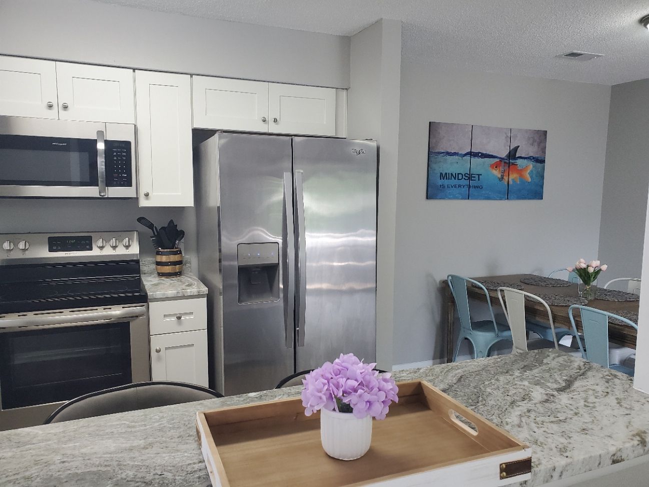 This is a newly remodeled second story 2 bedroom 2 full bath condo. TVs in the common area and both bedrooms. Internet & Roku media options provided. With a king sized bed in the master and a full-sized bunk bed in the second bedroom, this home comfortably sleeps 6. Fully outfitted kitchen, and a washer & dryer. You’ll find bedding, sheets, blankets, towels for bed & bath. Dinnerware & cookware provided. Just bring your suitcase and groceries. We do our best to provide everything else.